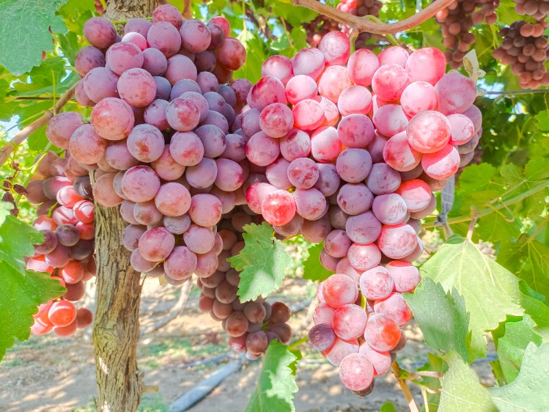 克瑞森葡萄,又稱為克倫生無核,果粒亮紅色,果肉淺黃色,半透明肉質(zhì),香脆可口,可溶性固形物含量20%以上,風(fēng)味甜,品質(zhì)極佳。