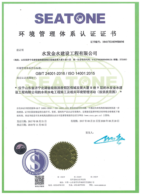 水發(fā)金水建設工程有限公司 三體證書-環(huán)境