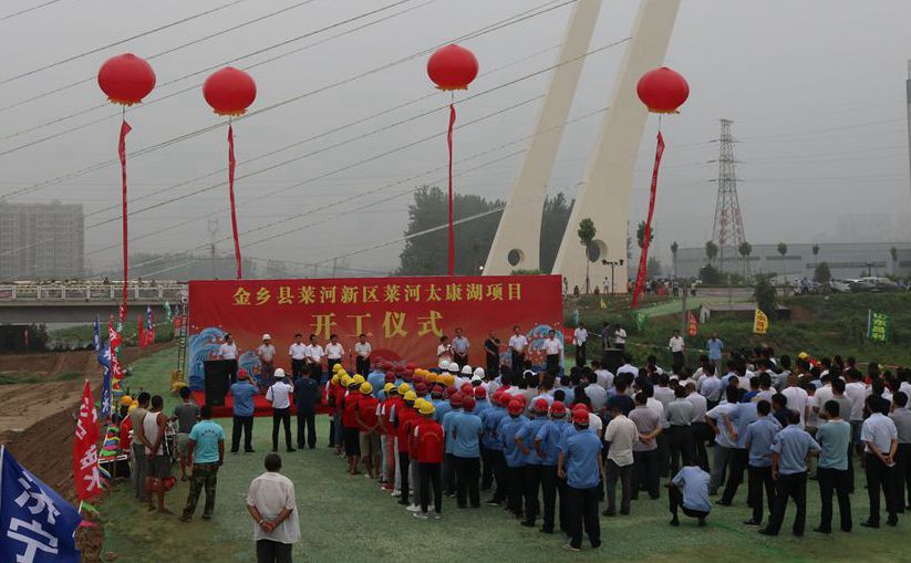 7月28日,萊河新區(qū)萊河太康湖項目開工儀式在金鄉(xiāng)縣舉行。金鄉(xiāng)縣委書記董冰,縣委副書記、縣長鄭士民,縣人大常委會主任付元琦,縣政協(xié)主席胡桂生,山東水控發(fā)展集團有限公司董事長吳東振、總經(jīng)理李加坤,濟寧金水水利工程有限公司,縣財政局、國土局等政府各部門主要負(fù)責(zé)人150余人出席開工儀式。儀式由縣委副書記、縣長鄭士民主持。