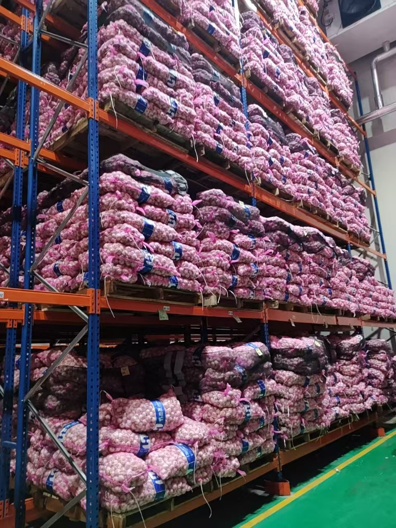 金鄉(xiāng)縣和福隆水發(fā)農(nóng)業(yè)發(fā)展有限公司通過全鏈條技術(shù)應(yīng)用實現(xiàn)大蒜長時保鮮。在源頭精選金鄉(xiāng)紫皮蒜、杞縣白皮蒜等耐儲品種,初加工環(huán)節(jié)嚴(yán)格分揀剔除瑕疵蒜,避免機械損傷影響保鮮。核心采用現(xiàn)代冷鏈技術(shù),構(gòu)建從倉儲到運輸?shù)娜虦乜伢w系,通過冷鏈倉儲和運輸設(shè)備精確控制適宜溫度,確保大蒜在倉庫、集裝箱及各運輸環(huán)節(jié)均處于穩(wěn)定保鮮環(huán)境,實現(xiàn)從中國田間到東南亞、歐洲等全球市場的冷鏈無縫銜接,大幅延長保鮮周期,保障大蒜到達(dá)世界餐桌時仍保持良好新鮮度。